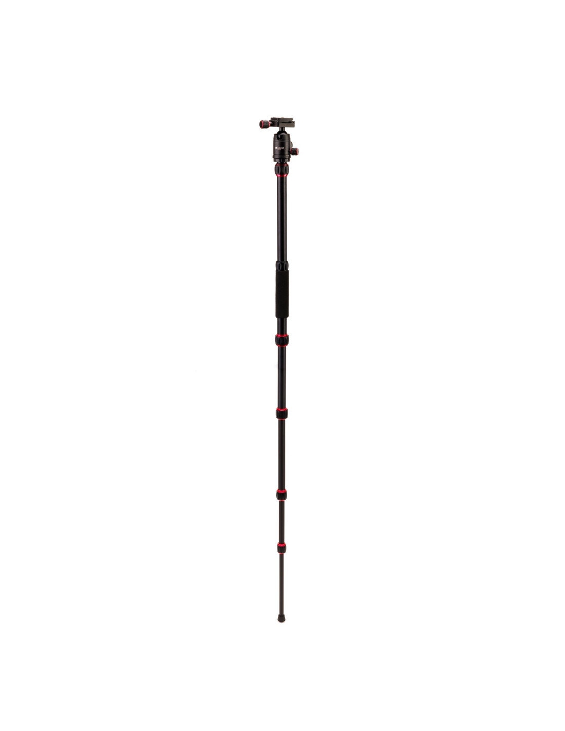 The ballhead features rubberized knobs for a secure grip and precise adjustment.